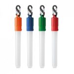 ABS headlamp with buckle, 1 white lamp (1W), 2 red LEDs with flash function. Includes 2 CR2032 lithium batteries. This headlamp is supplied in a box. 55 x 38 x 45 mm