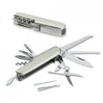 Stainless steel and metal multifunction pocket knife with 11 functions. 90 x 25 x 18 mm