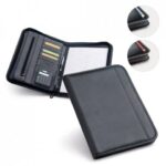 A4 Imitation leather folder that includes a notepad of 20 lined sheets and contains pen holder (pen not included). This folder also includes an 8-digit dual-power calculator with LR1130 battery (included). 240 x 320 x 32 mm
