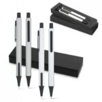 Elegant roller in metal and imitation leather. Supplied in a padded gift case. ø13 x 141 mm | Case: 180 x 78 x 35 mm