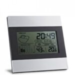 Acrylic pen holder with calendar, alarm and thermometer. This pen holder includes 1 CR2025 battery. 95 x 118 x 50 mm
