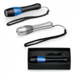 Metal torch with one LED and rubber grip. Batteries not included. Charging via car ignitron. ø35 x 159 mm