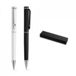 Metal ball pen and roller set provided in elegant cushioned gift box. Ball pen: ø13 x 137 mm | Roller: ø13 x 137 mm | Box: 180 x 30 x 56 mm
