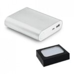 Aluminium portable battery with lithium battery, capacity of 4.000 mAh and lifetime over 500 cycles. This battery has 5V/1A input/output, includes USB/micro USB cable to charge the battery and is supplied in a gift box. 110 x 68 x 10 mm | Box: 115 x 70 x 25 mm