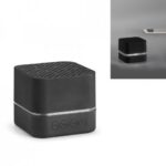 Rubber-finished ABS speaker with microphone, bluetooth transmission, TF card reader and 3W / 4Ω power. This speaker has autonomy up to 2 h and functions such as answer calls, control the volume and connect to the mobile device playlist. This product includes USB/micro USB cable for charging. ø59 x 55 mm