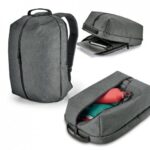 600D high-density laptog backpack. The main compartment is lined and has 2 padded dividers for laptop up to 14” and tablet up to 9’7″. The backpack has a front pocket, 1 side pocket. The back and the straps are padded. 310 x 400 x 110 mm
